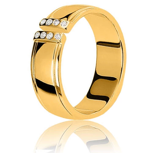 Alliance en or jaune 18 carats formée d’un anneau bombé ouvert avec de chaque côté une ligne circulaire.