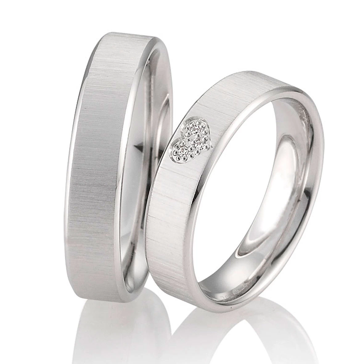 La finition extérieure de cette bague de mariage est brossée.