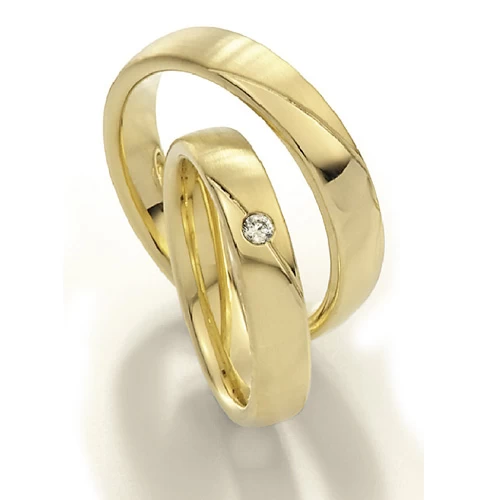 La moitié de cette alliance est en or poli et l’autre moitié en or brossé.