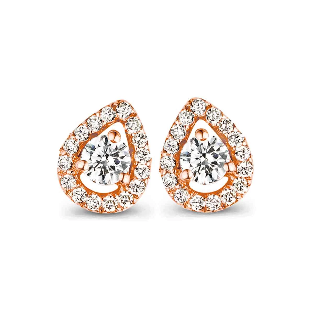 Or rose de 18 carats. Le poids total des deux diamants est de 0.21 carat.