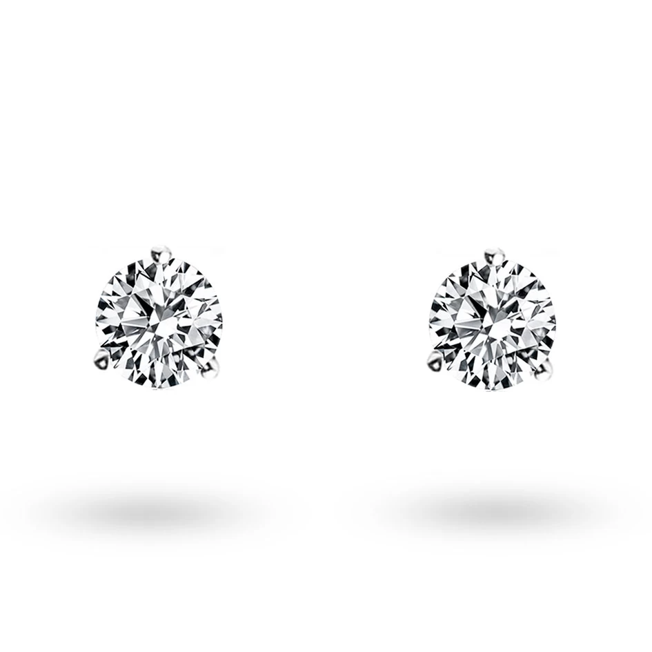 Boucle d’oreille diamant sertie 3 griffes en or blanc 18 carats.