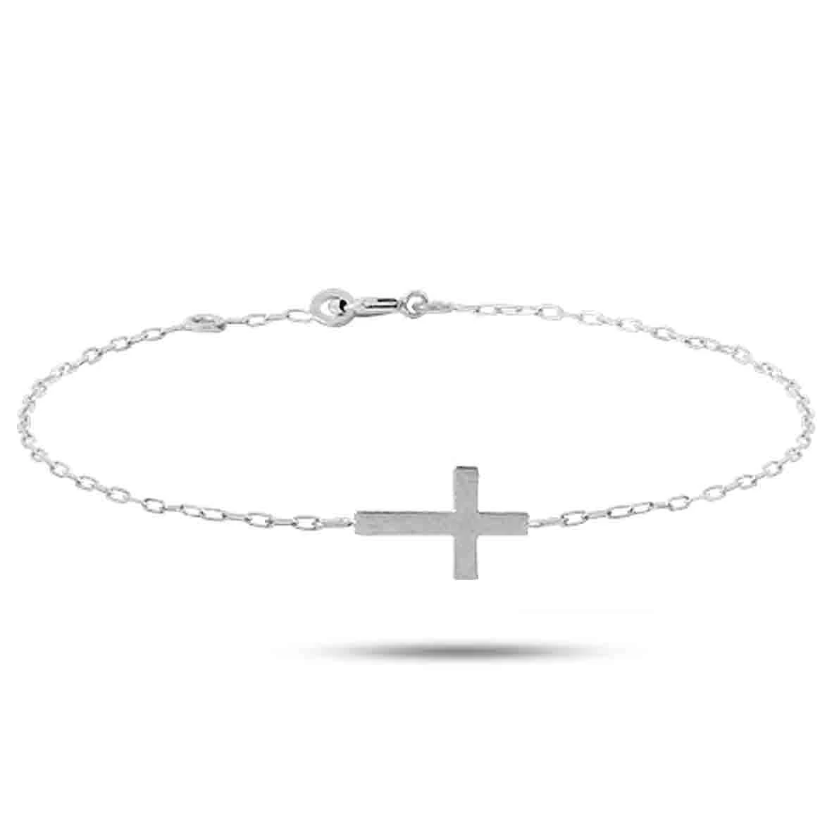Bracelet Or blanc 9 & 18 carats au fini poli brillant avec une Croix de dimension 8 x 12 mm.