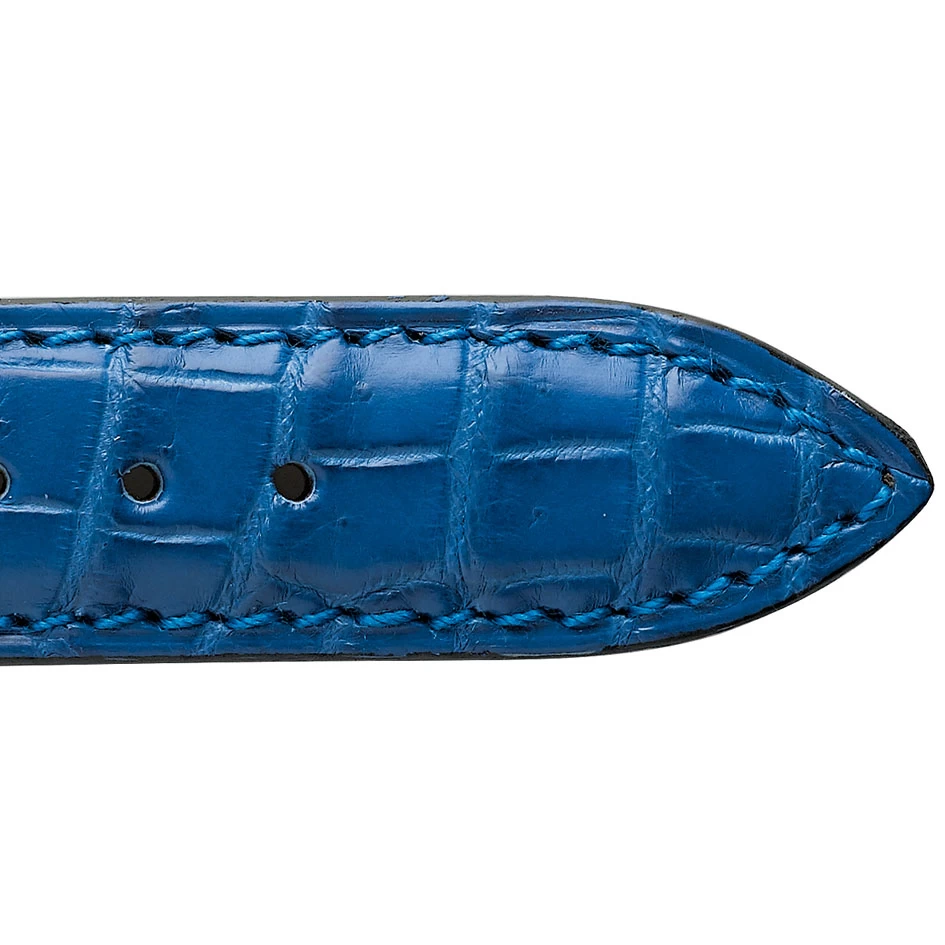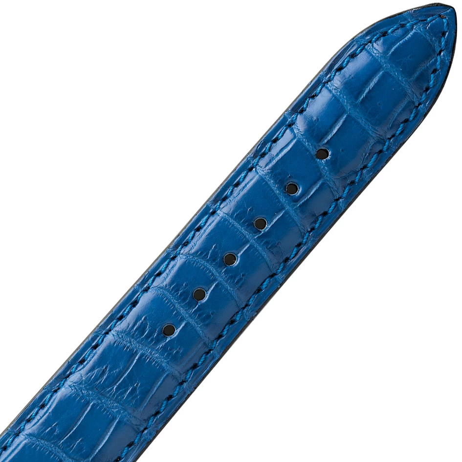 Le bracelet de montre crocodile bleu a une doublure cuir.