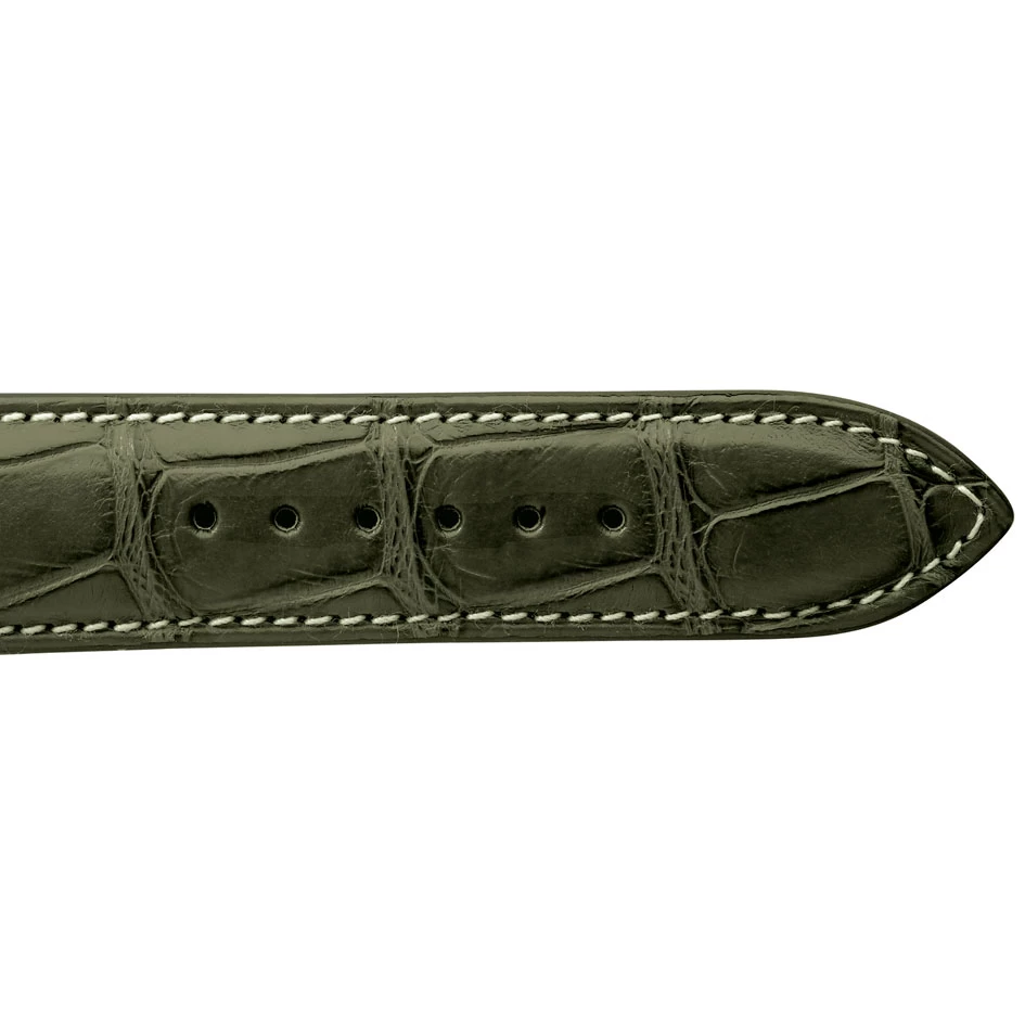 Le bracelet montre Crocodile kaki est légèrement bombé.