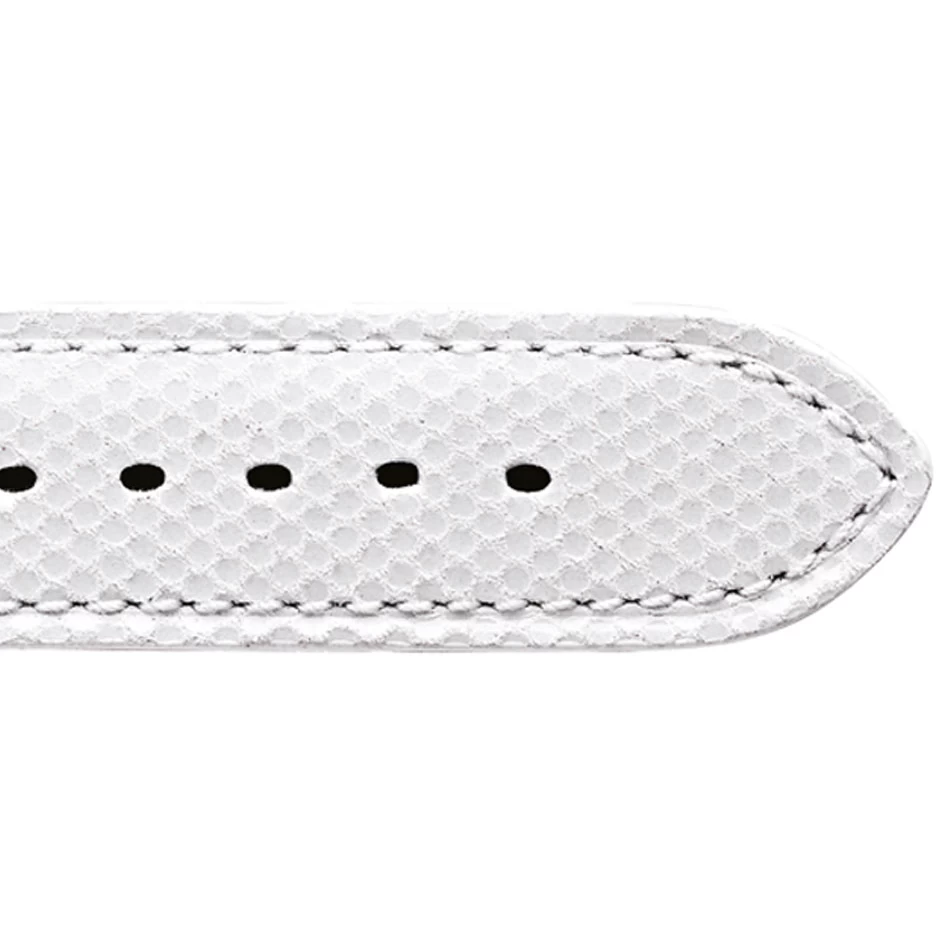 Le bracelet de montre en cuir Chevreau façon Lézard est blanc a une doublure en cuir.