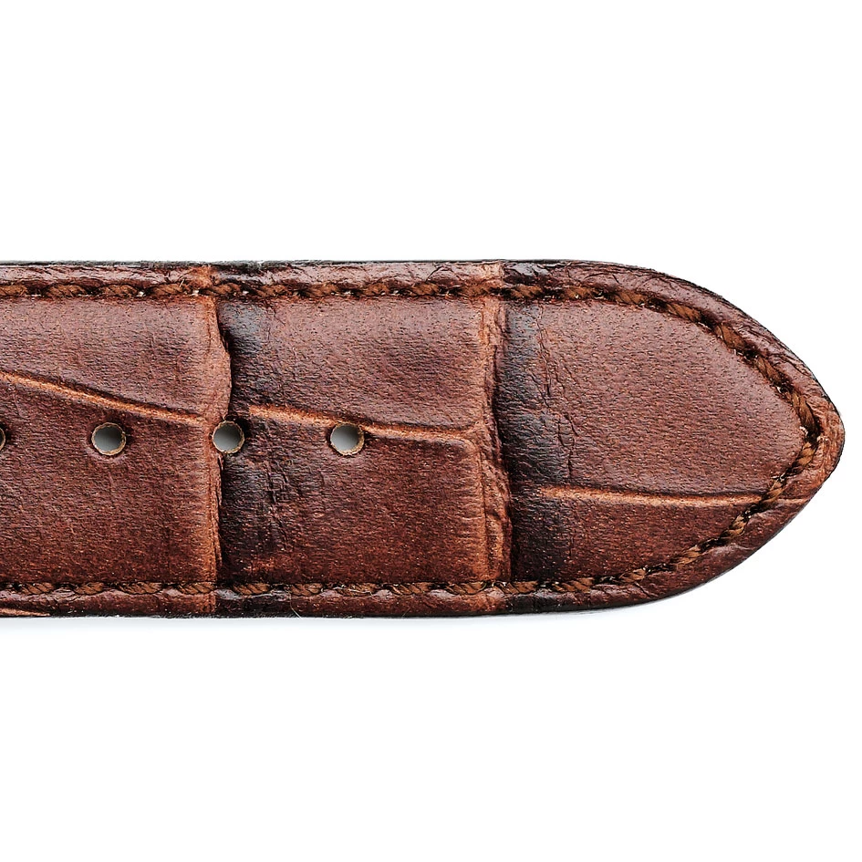 Le bracelet de montre en veau façon croco marron a une doublure en cuir.