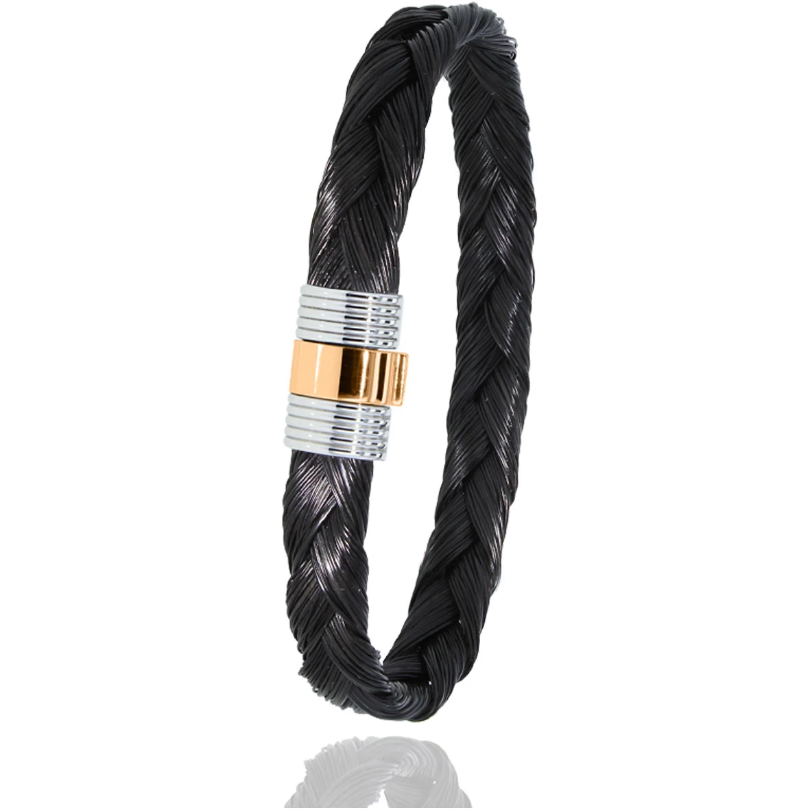 Bracelet Albanu en poils de girafe, avec un fermoir en acier et or rose.