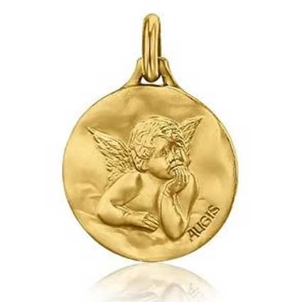 Médaille Ange De Raphaël Augis Patine Main Or Jaune 18 Mm Élizane J5035X0000
