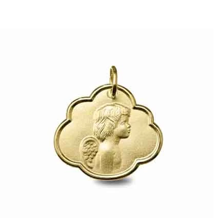 Médaille biseautée en forme de nuage 18ct en or jaune mat poli. Jeune Ange.