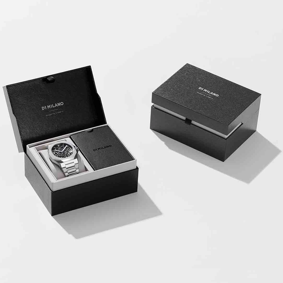 Doté d’un nouveau cadran squelette transparent, d’un mouvement à remontage automatique à 24 rubis et d’éléments en acier inoxydable .