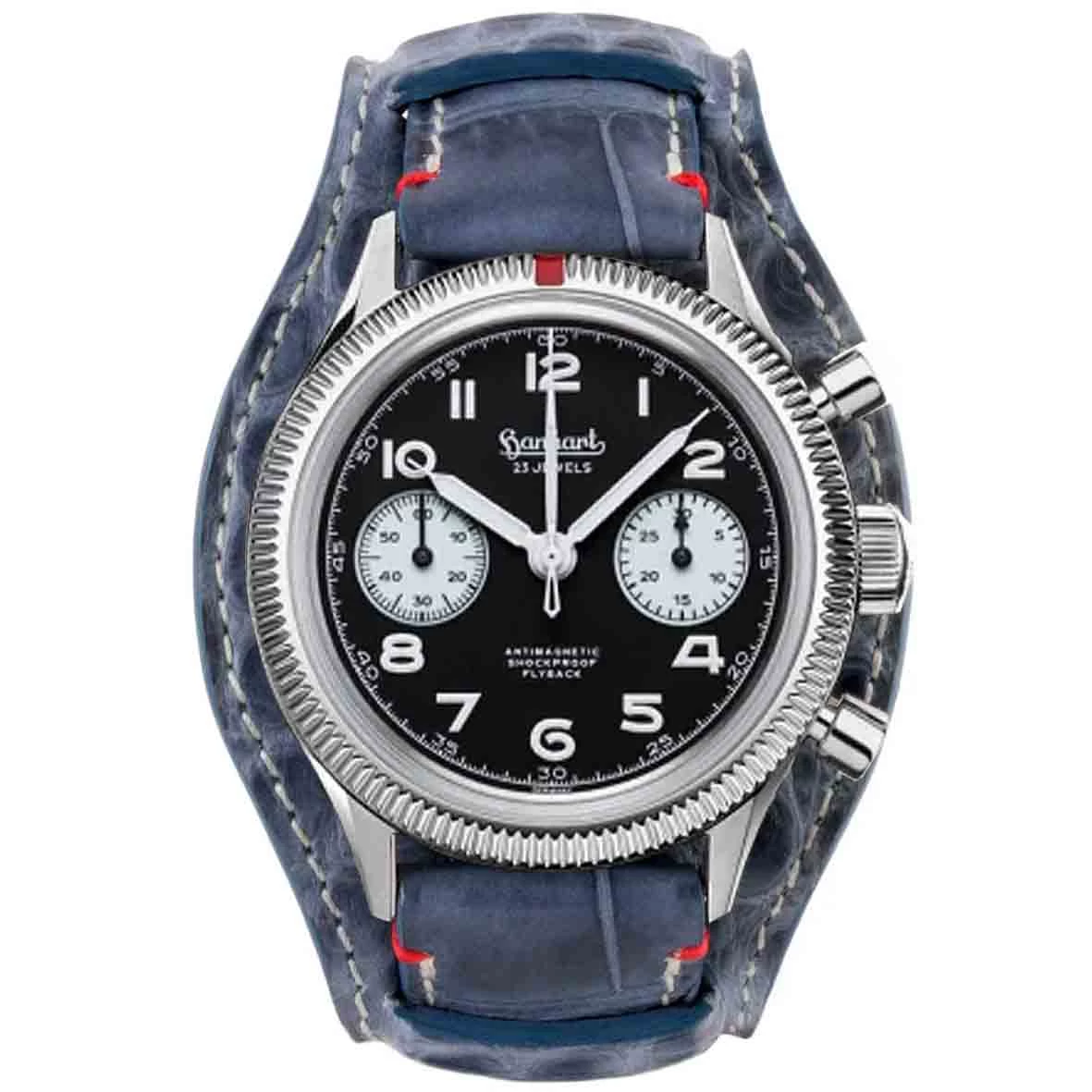 Montre Hanhart 417 ES – 42 Mm – Flyback Panda – 1954 – Croco EBle Jean Mécanique Diamètre 39 Mm- H721.211-7010-crocobleu