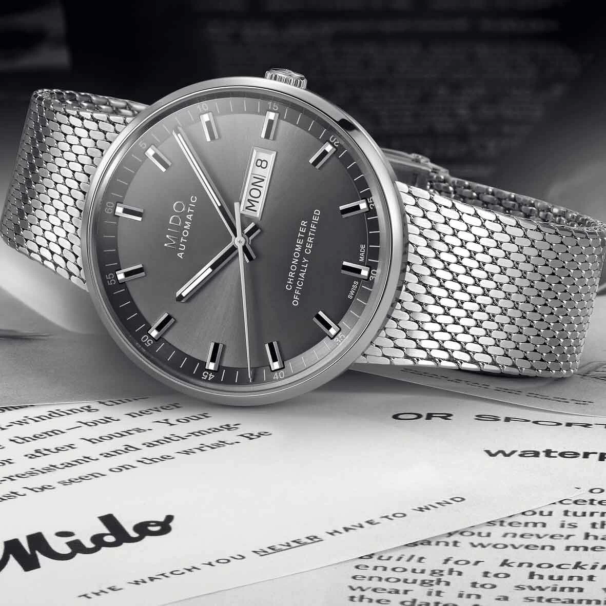 La montre Commander Icône rend hommage à l’un des modèles Mido les plus emblématiques.